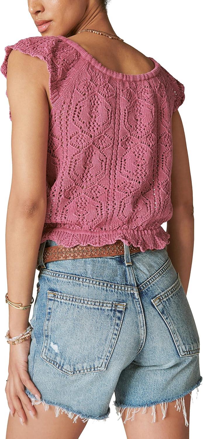 Welcome the warm weather season with the Flutter Sleeve Knit Pullover from Lucky Brand. Made from acid-washed cotton, this pullover top has an easy scoop neck and fun flutter sleeves. The knit fabric has an all-over intricate design perfect for both everyday and special looks. It’s a little bit pretty, a little bit boho and totally Lucky Brand.