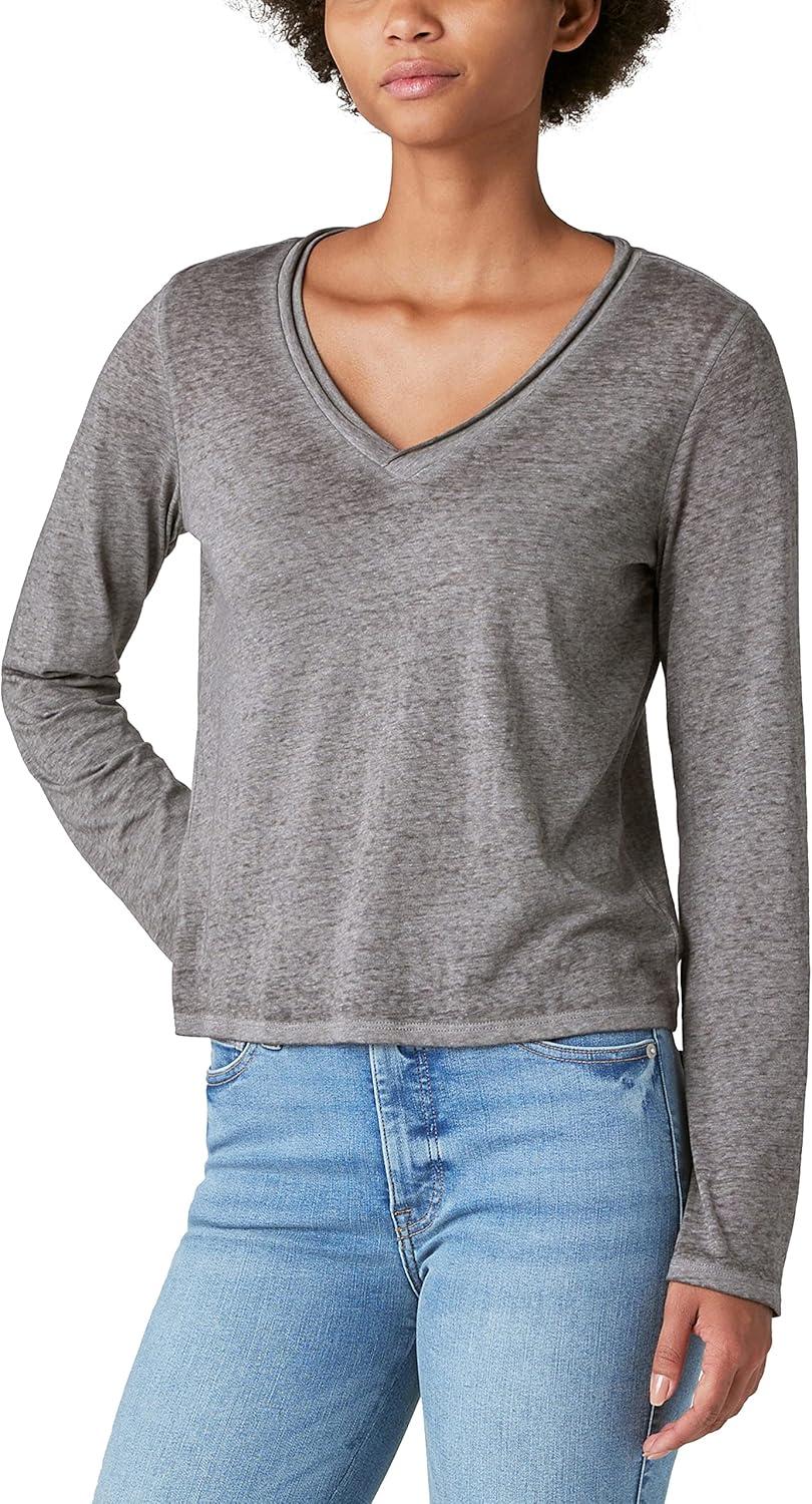 Lucky Brand Women’s Long Sleeve V Neck Tee(Asphault)
