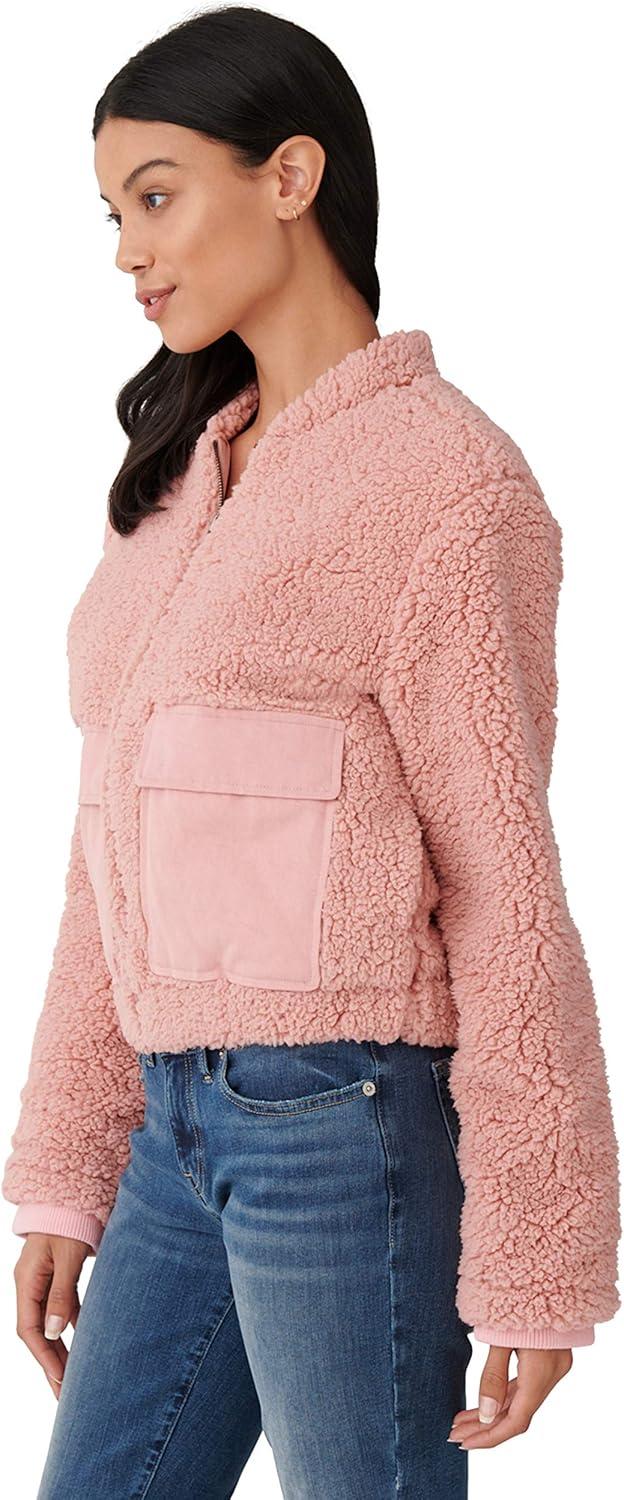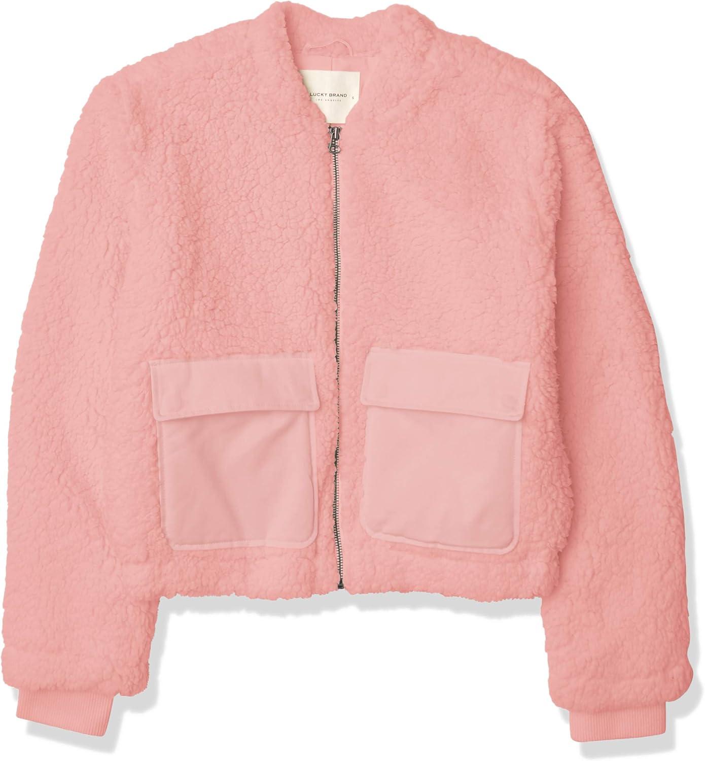 Lucky Brand Women’s Long Sleeve Zip Front Utility Teddy Coat(Rose Tan)