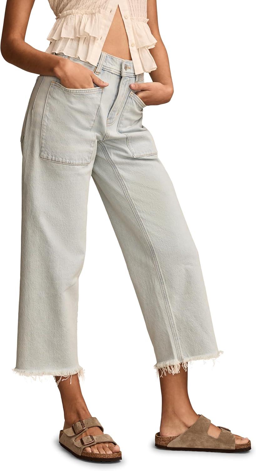 Inspired by authentic vintage-like styles, Lucky Brand’s Lucky Legend High Rise Wide Leg Crop jean is made to fit easy through the hips and thighs and finish with a cropped wide leg. From Lucky’s limited edition Lucky Legend collection, this pair has front patch pockets and a raw edge frayed hem.