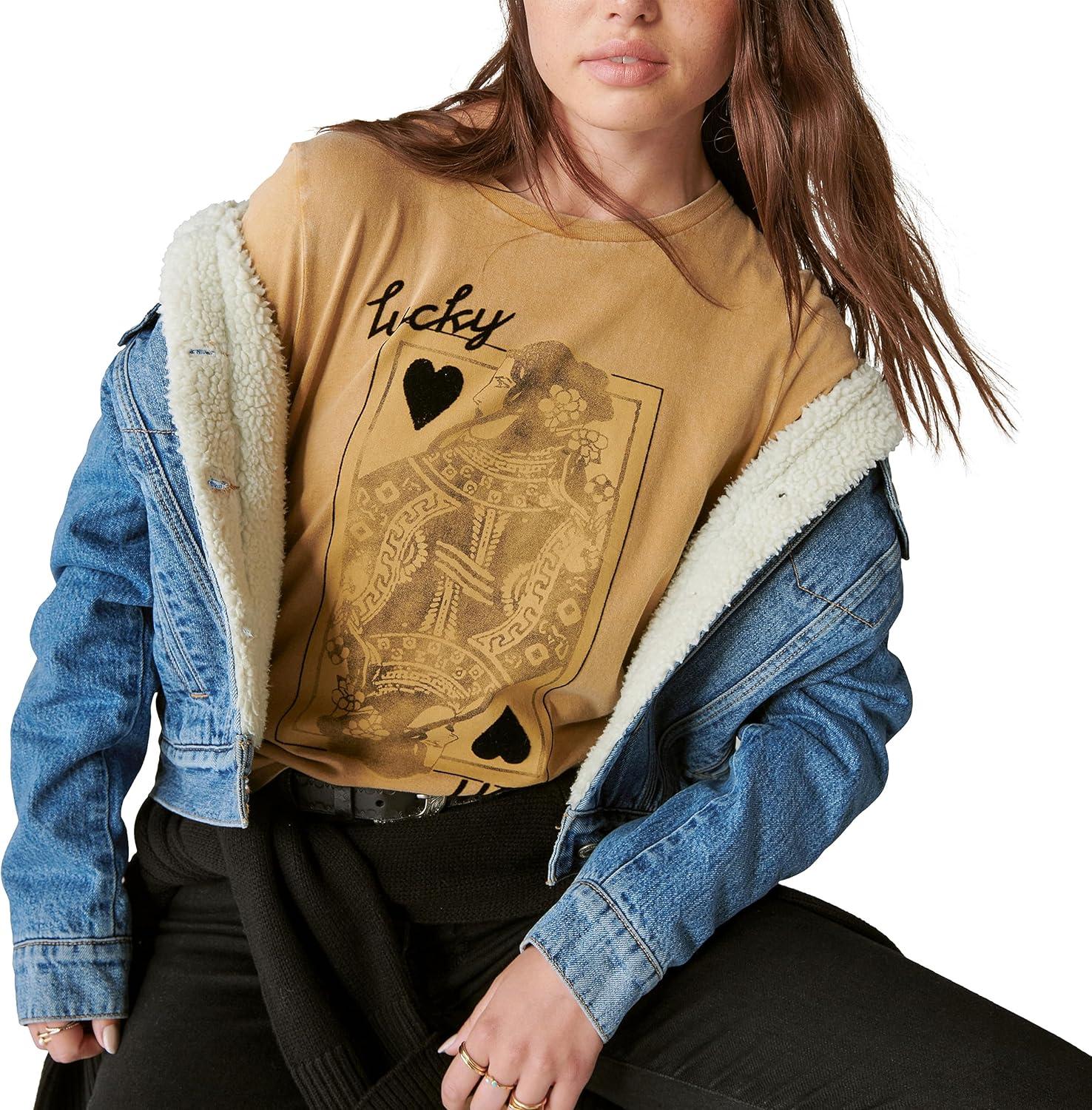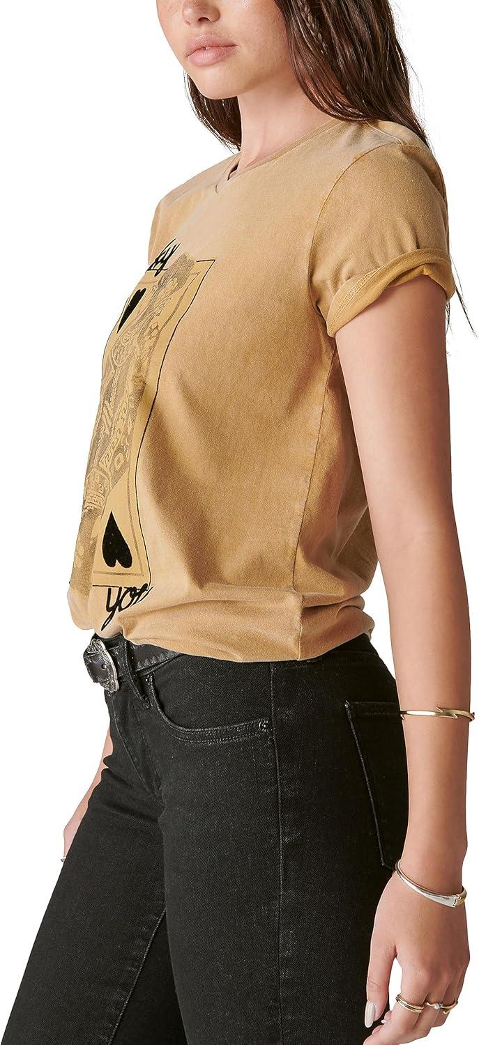 Make an easy wardrobe decision and reach for the Lucky You Card Classic Crew from Lucky Brand. Spun from pure cotton, this t shirt has a comfortable crewneck, short sleeves and a large card graphic at the chest. The laid back style and soft hand feel of this tee make it a must-have for your everyday.