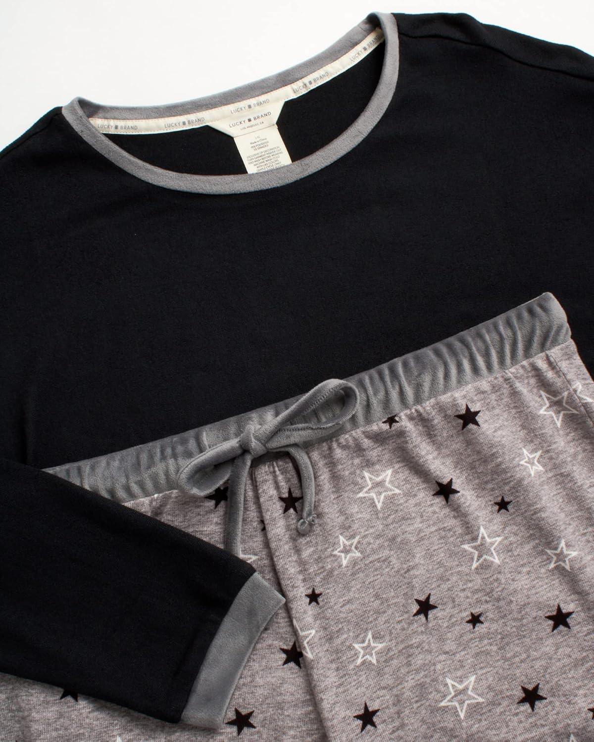 imageLucky Brand Womens Pajama Set  2 Piece Long Sleeve Sleep Shirt and Jogger Pants with Velour Trim SXLBlackStars