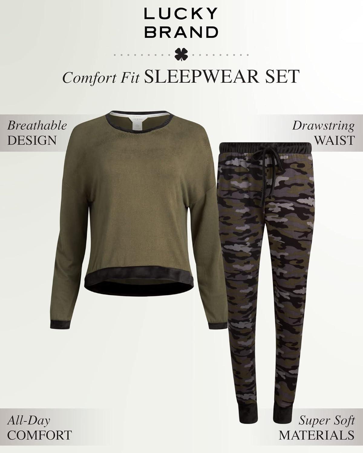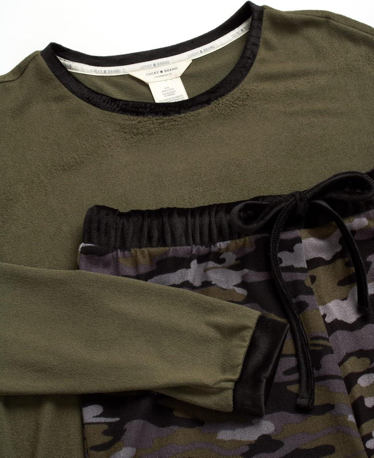 Lucky Brand Women’s Pajama Set – 2 Piece Long Sleeve Sleep Shirt and Jogger Pants with Velour Trim (S-XL)(Dusky Green)