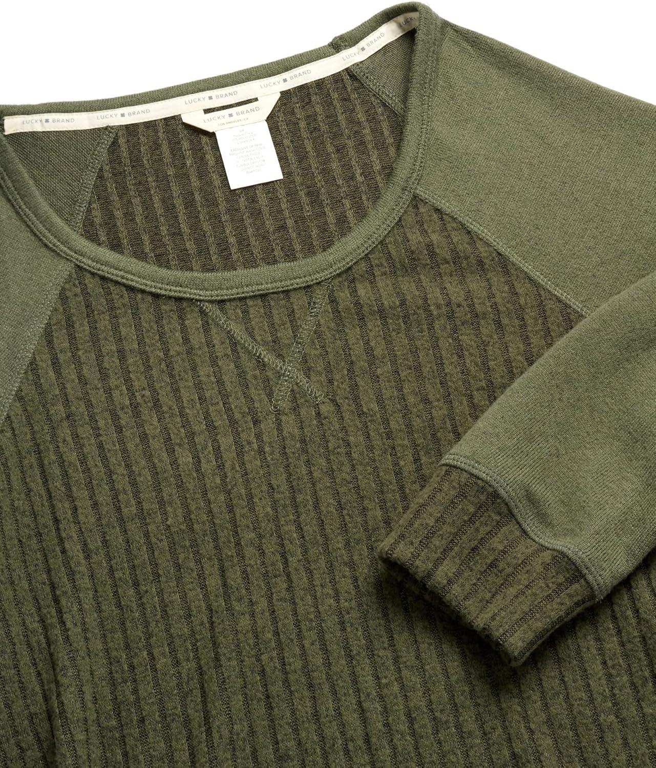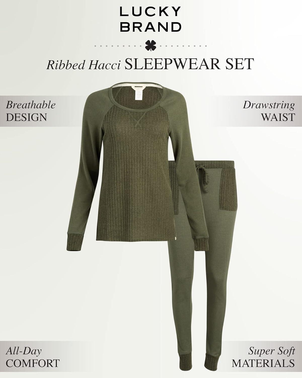 Lucky Brand Women's Pajama Set - 2 Piece Ribbed Hacci Long Sleeve and Joggers Sleepwear(Beetle Green)