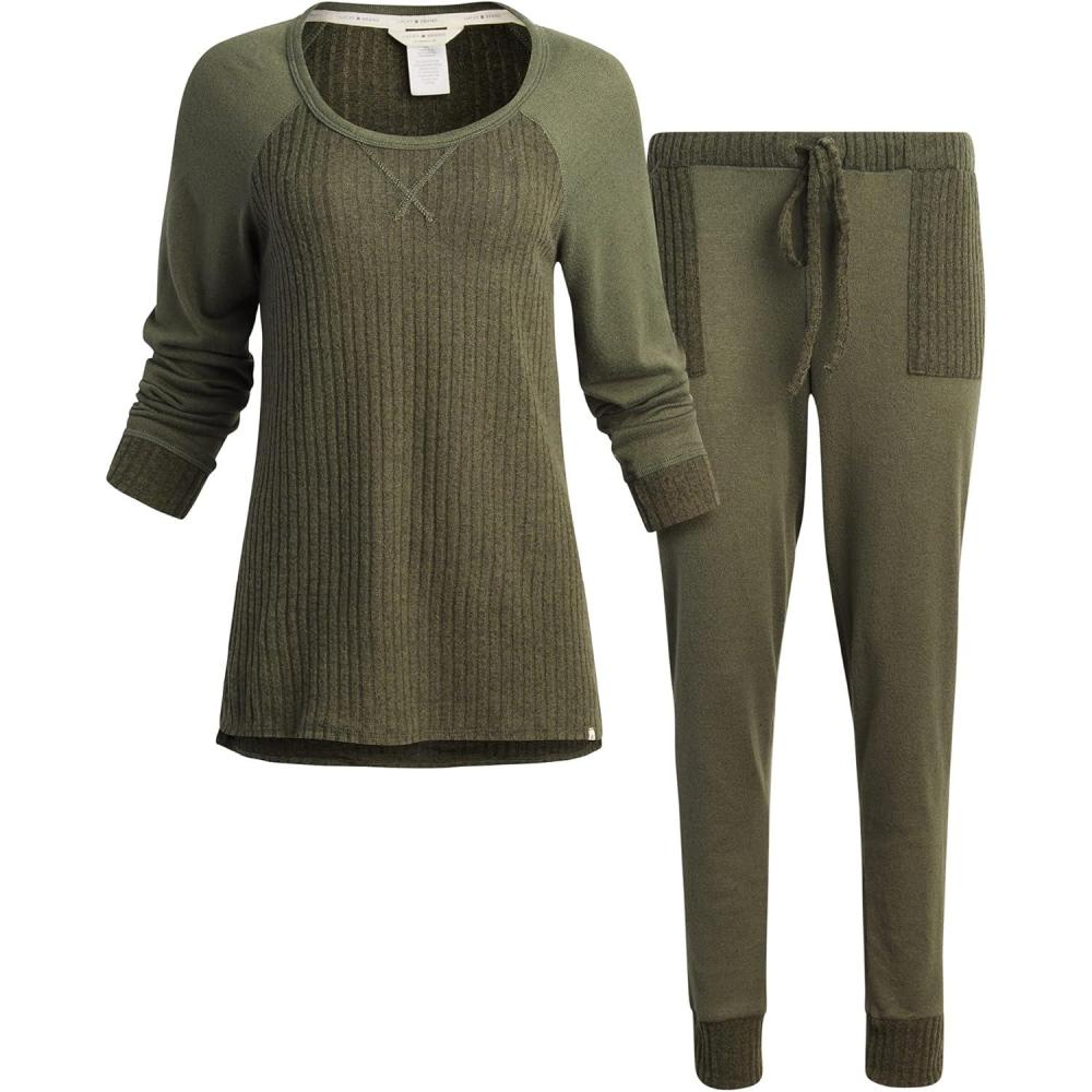 imageLucky Brand Womens Pajama Set  2 Piece Ribbed Hacci Long Sleeve and Joggers SleepwearBeetle Green