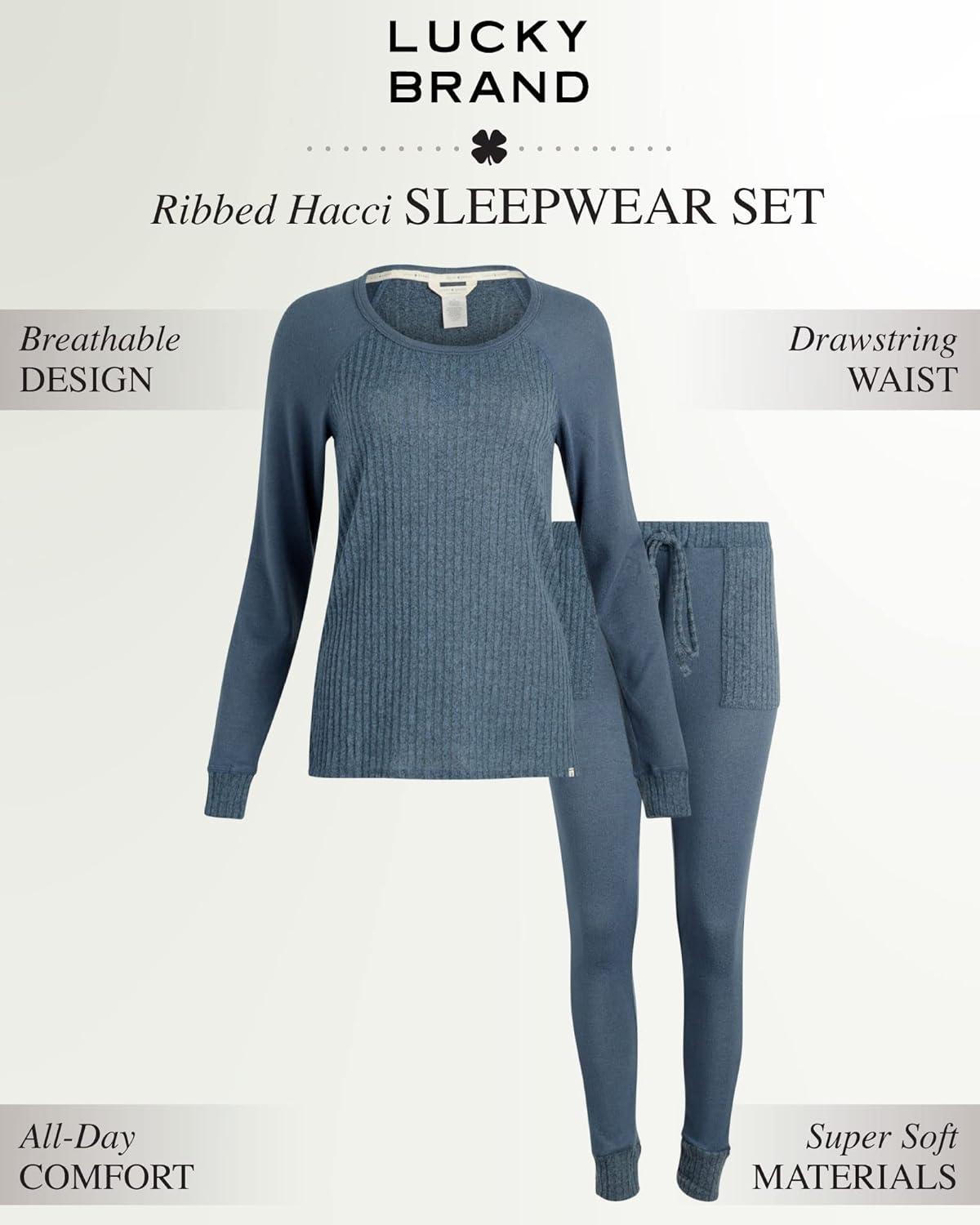 Lucky Brand Women's Pajama Set - 2 Piece Ribbed Hacci Long Sleeve and Joggers Sleepwear(Blue Heather)