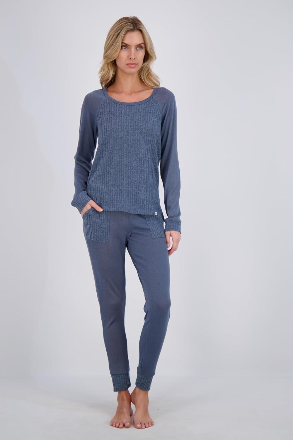 Lucky Brand Women’s Pajama Set – 2 Piece Ribbed Hacci Long Sleeve and Joggers Sleepwear(Blue Heather)