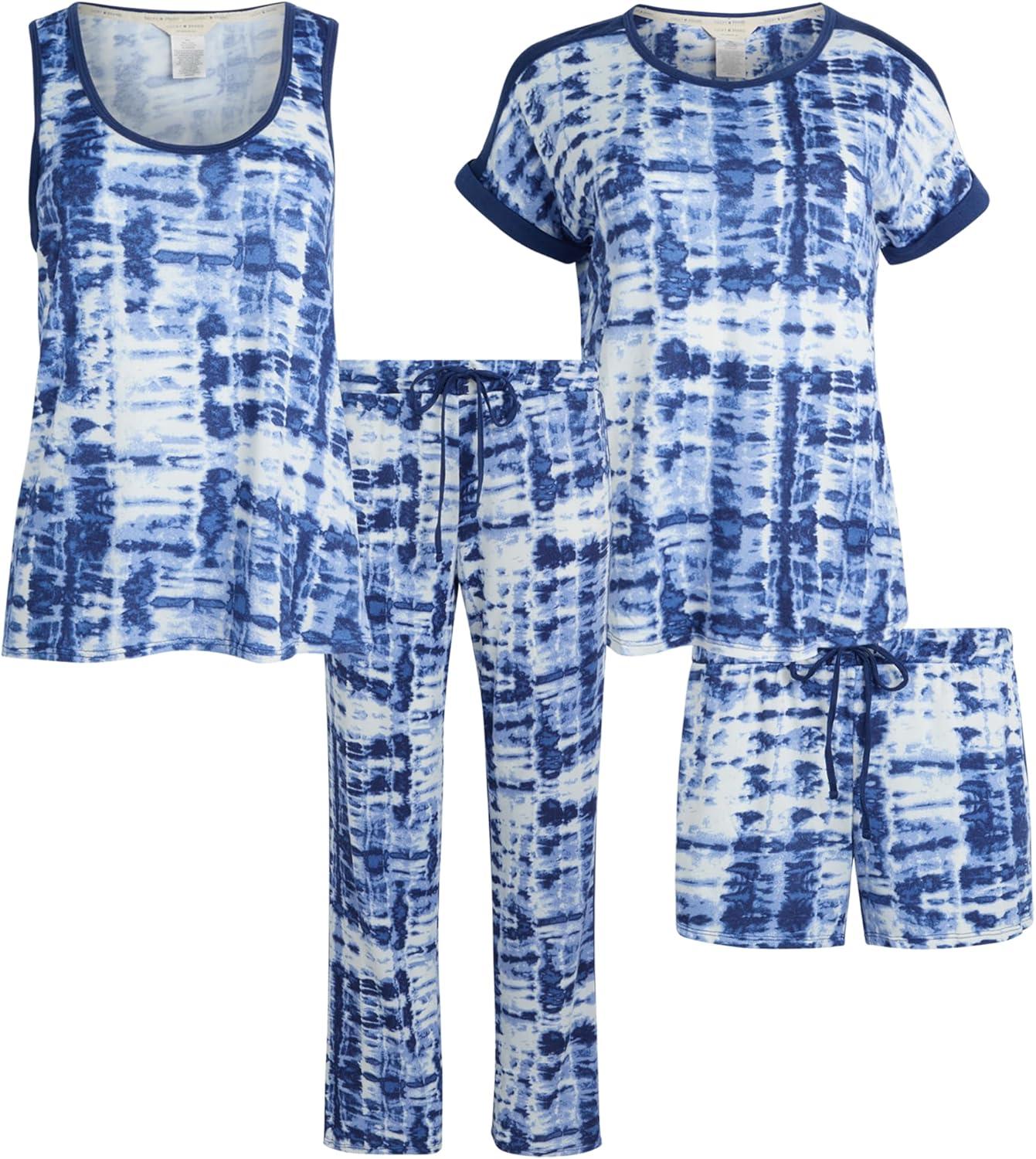 Lucky Brand Women’s Pajama Set – 4 Piece Sleep Shirt, Tank Top, Pajama Pants, Lounge Shorts (S-XL)(Blue)