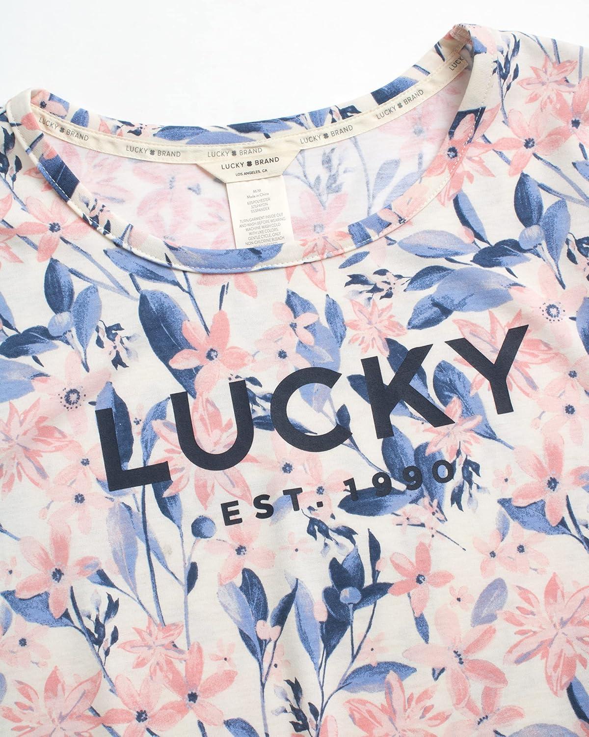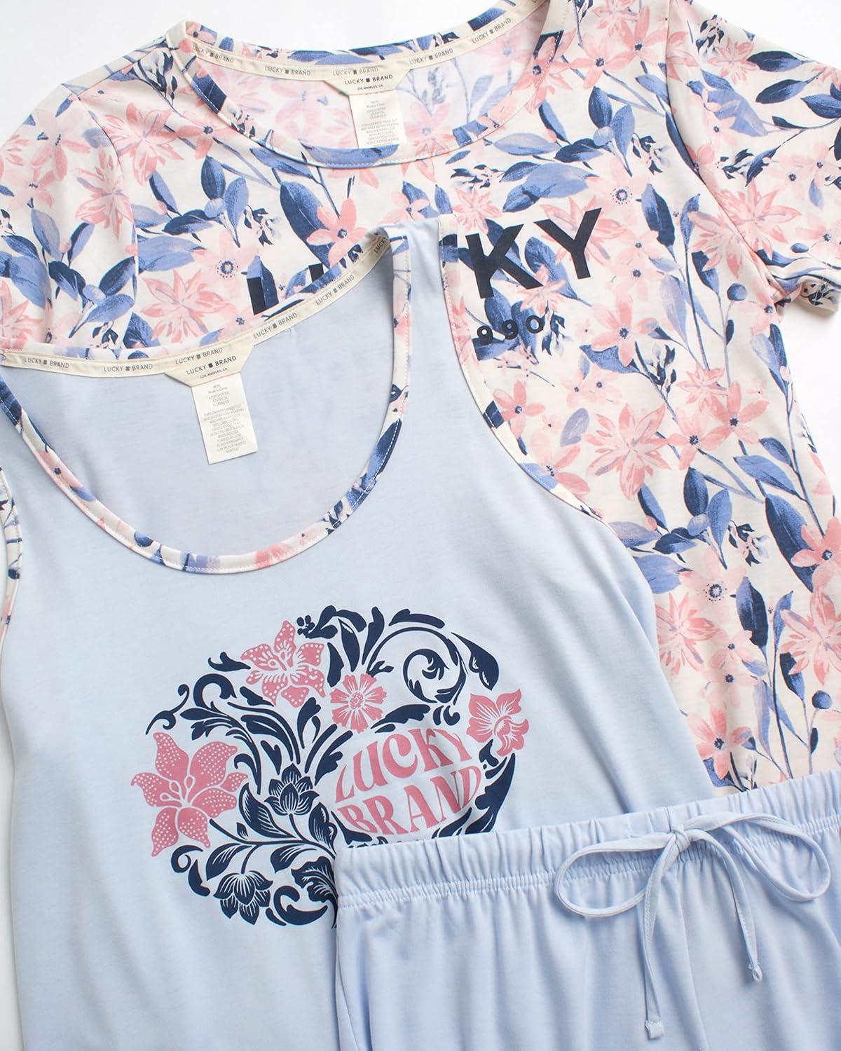 Lucky Brand Women's Pants Set, 3 Piece T-Shirt, Tank, Top, and Joggers, Casual Everyday Loungewear for Women (S-XL)(Soft Bloom)