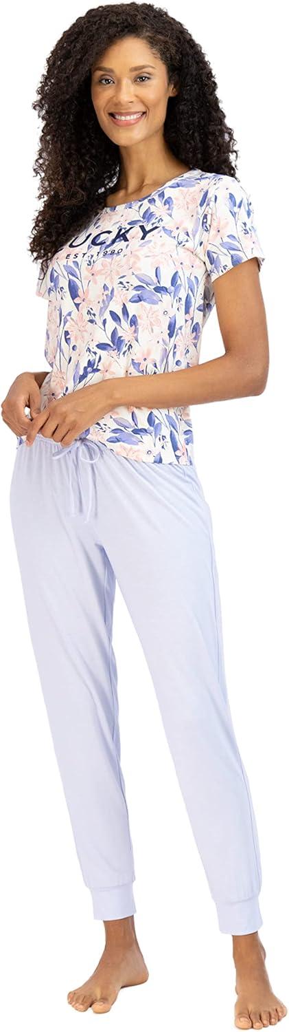 Lucky Brand Women’s Pants Set, 3 Piece T-Shirt, Tank, Top, and Joggers, Casual Everyday Loungewear for Women (S-XL)(Soft Bloom)