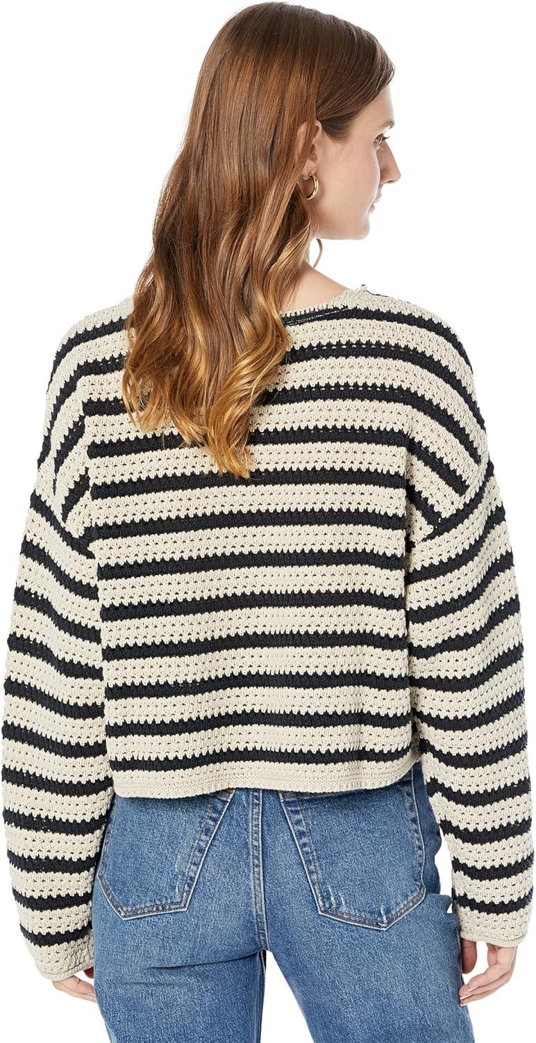 Lucky Brand Women's Pointelle Stripe Sweater(Black Peyote Stripe)