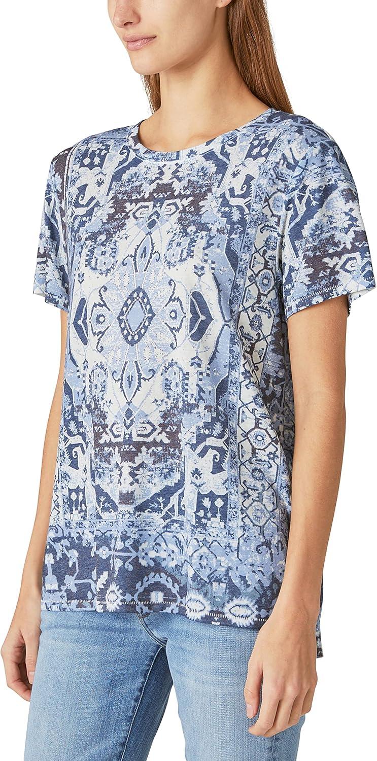 Lucky Brand Womens Printed Scoop Neck Tee(Blue Multi)