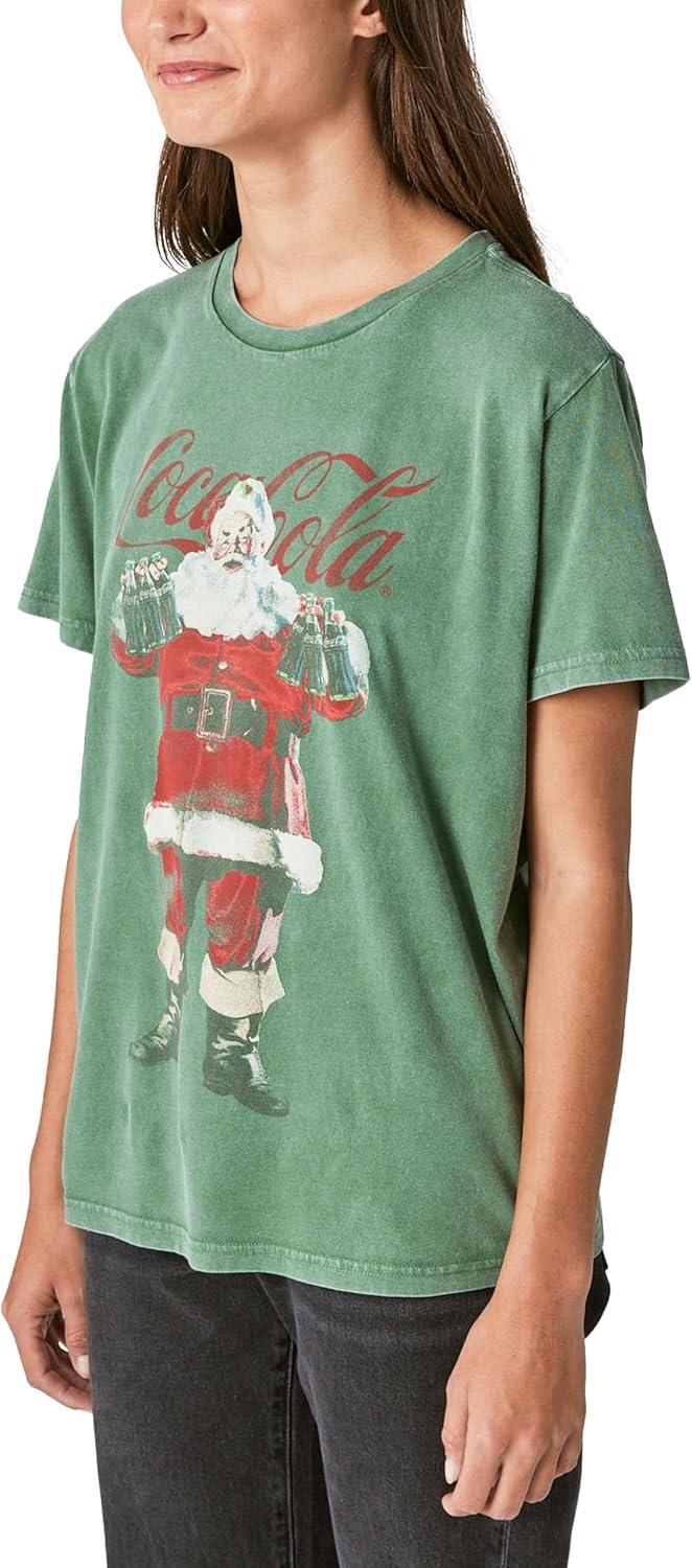 Lucky Brand Womens Santa Claus Coca Cola Boyfriend Tee(Hunter Green)