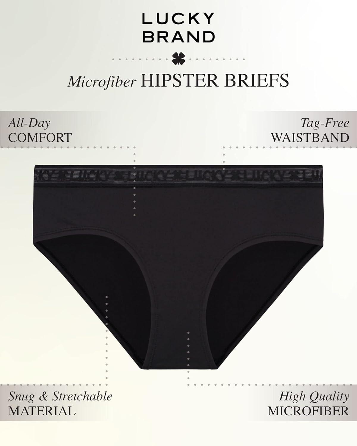 Lucky Brand Women’s Underwear – 5 Pack Microfiber Hipster Briefs (S-XL)(Gardenia/Natural/Black/Silver Sconce/Multi)