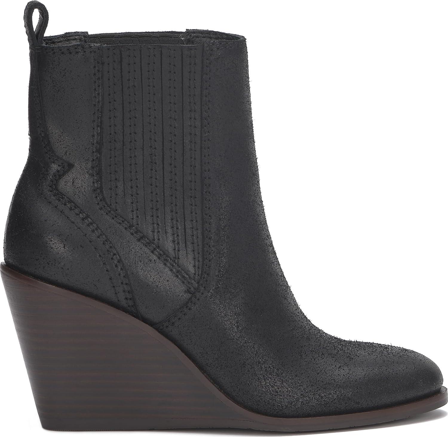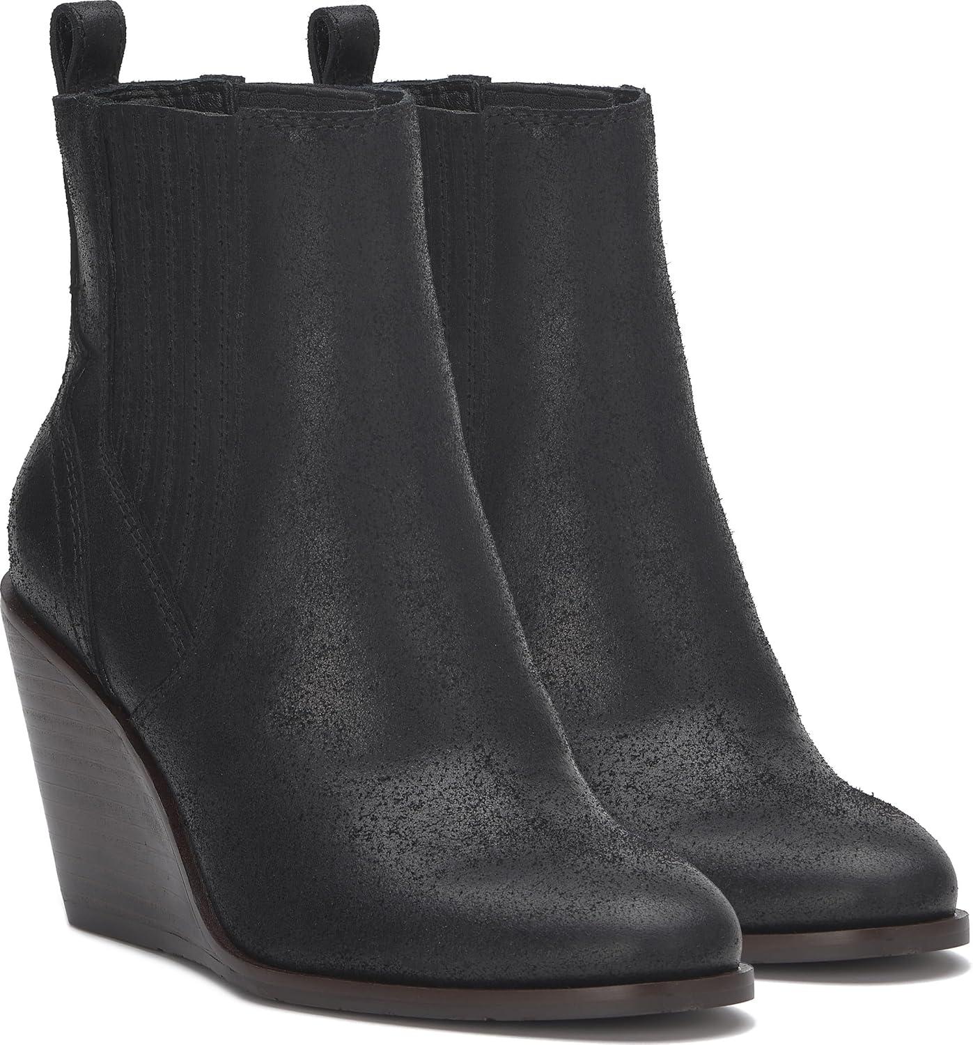 Wedge bootie of the season! The Wilano has a burnished upper and exposed stack wedge, keeping this dressier silhouette casual and cool.