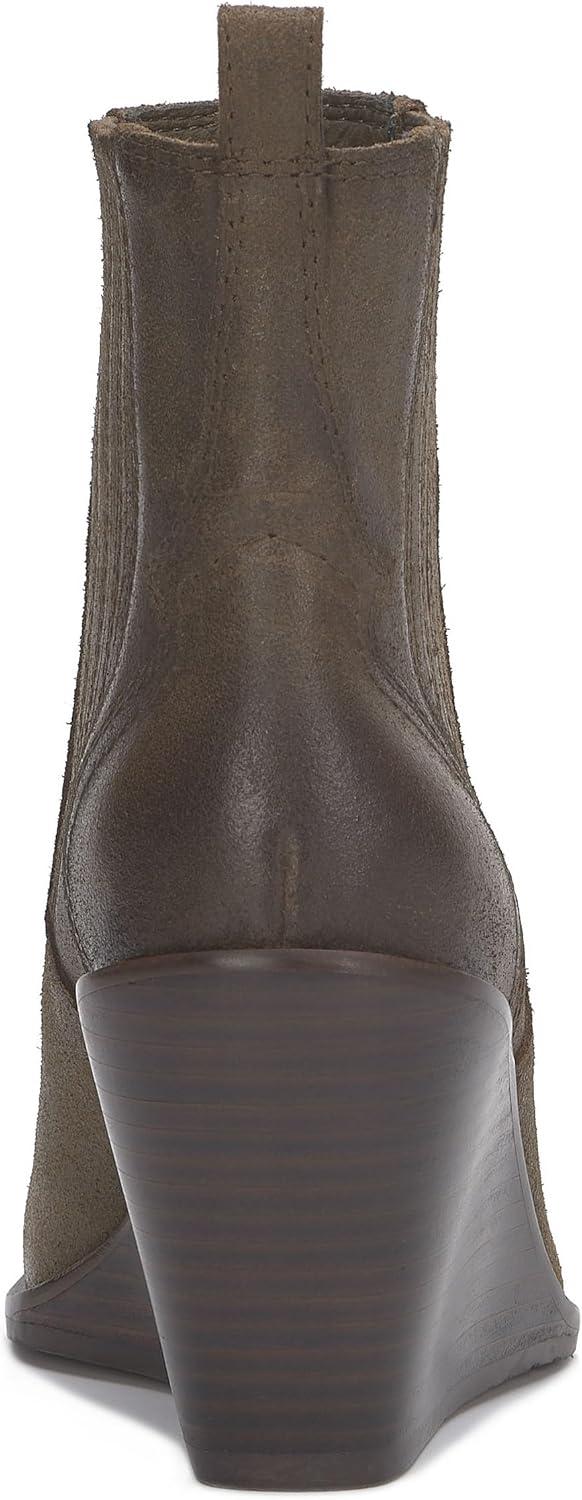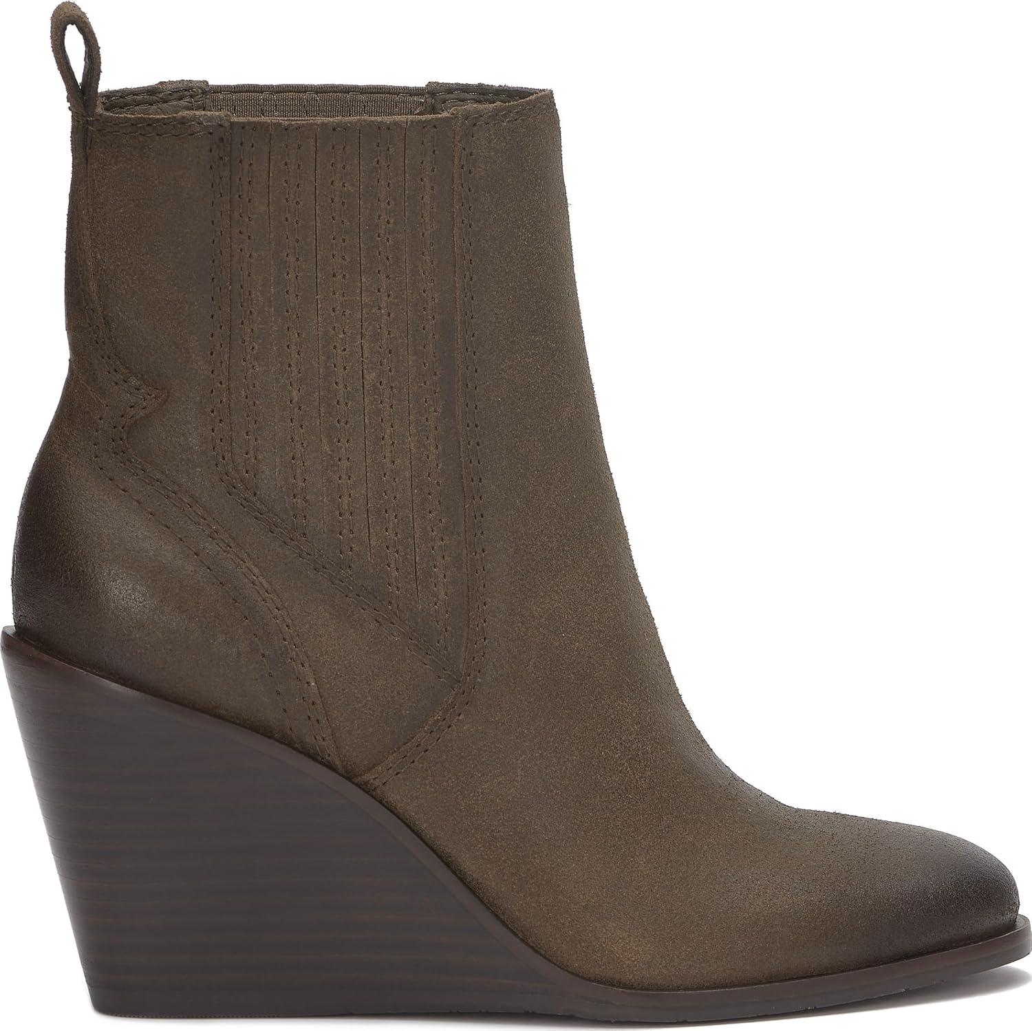 Wedge bootie of the season! The Wilano has a burnished upper and exposed stack wedge, keeping this dressier silhouette casual and cool.