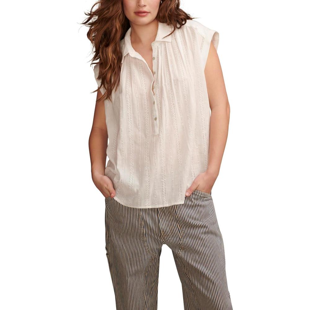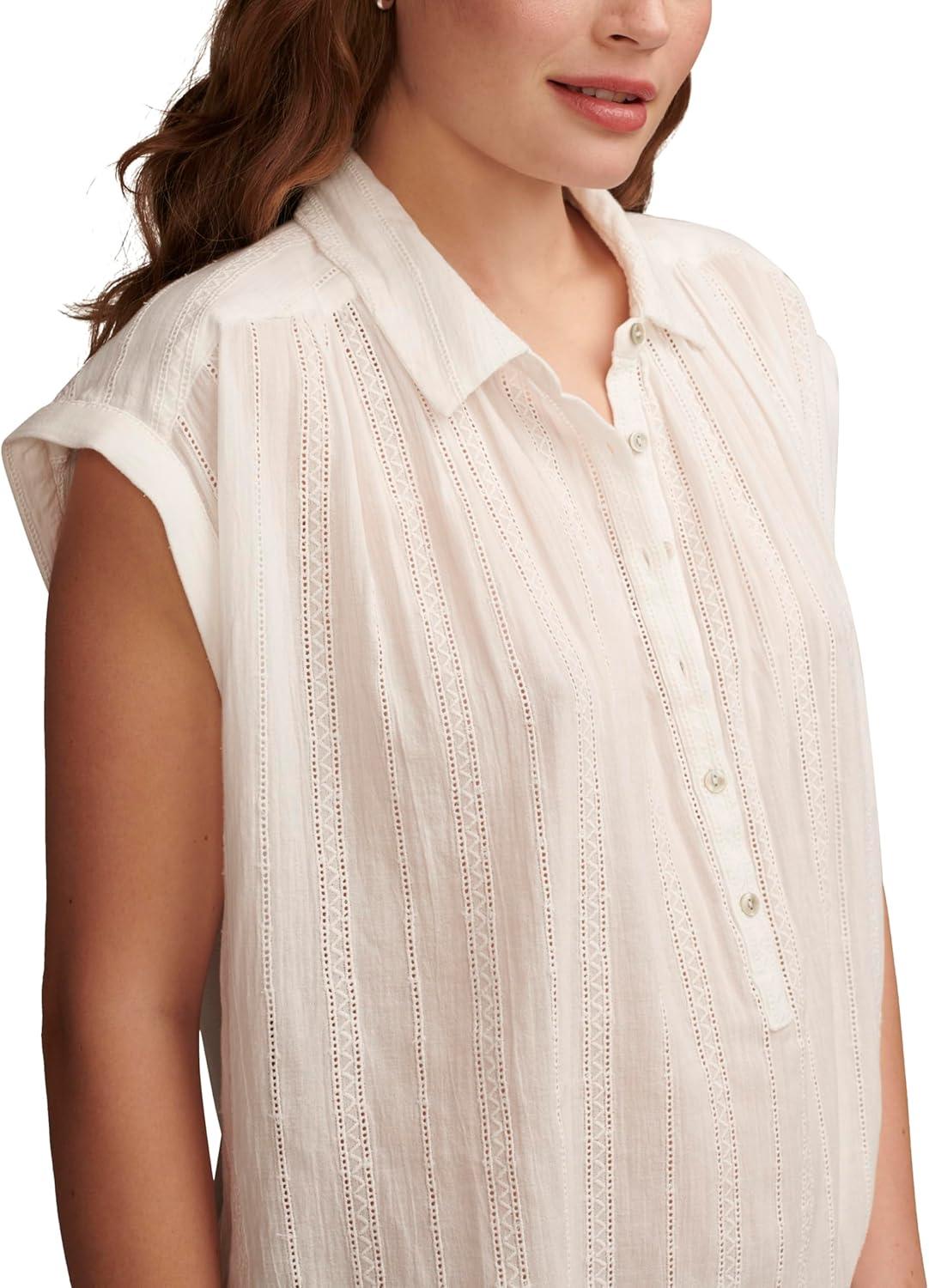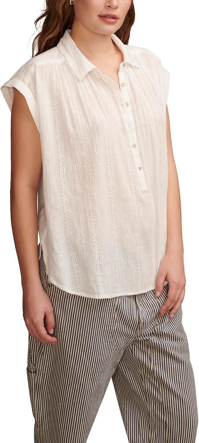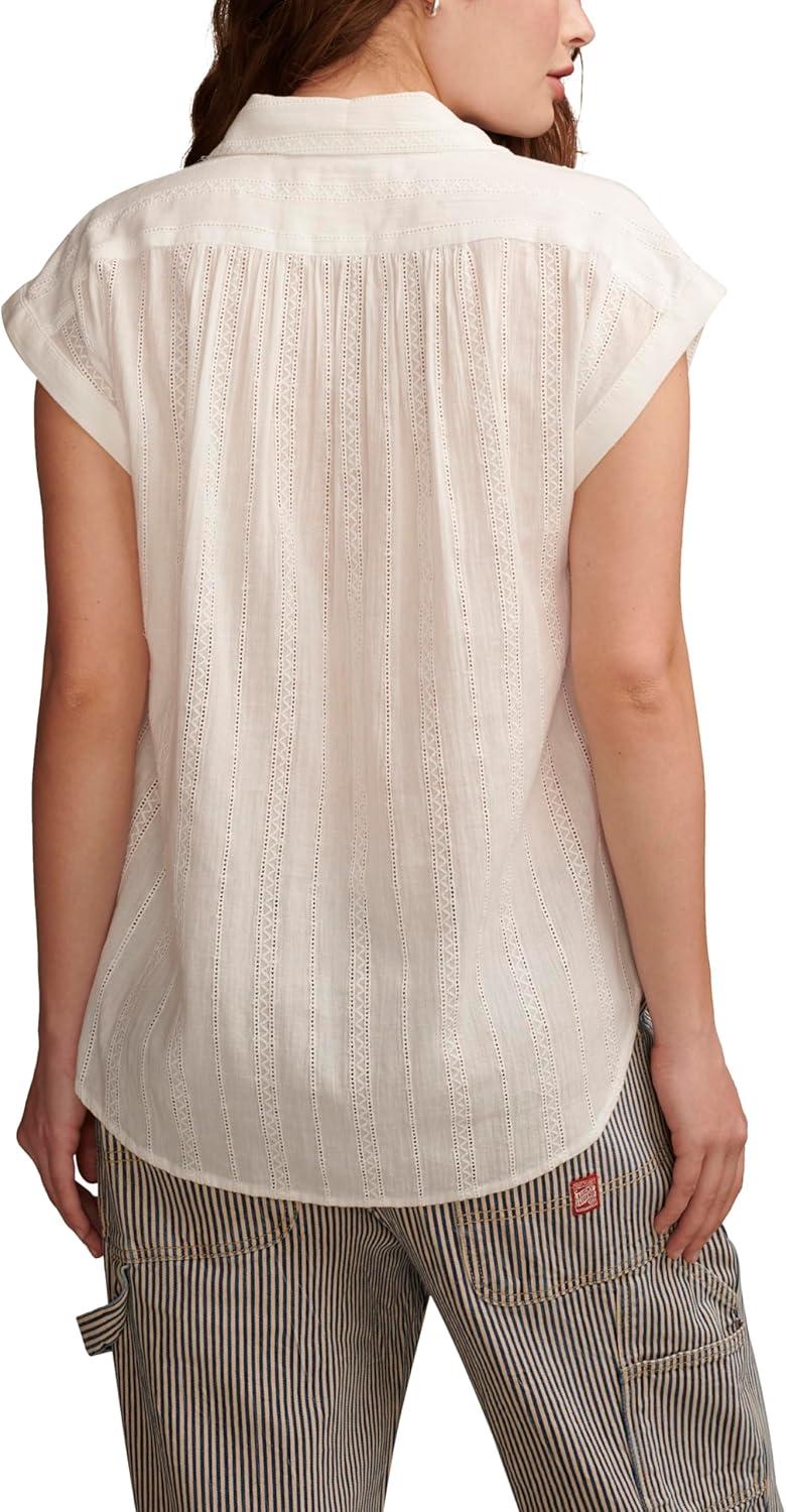 Simplify your spring and summer style with the Solid Short Sleeve Popover W/ Schiffli from Lucky Brand. Made of 100% cotton, this short sleeve shirt features pretty lace details and a classic spread collar. As effortless as it is essential, this popover top is a go-to choice for any day of the week and into the weekend.